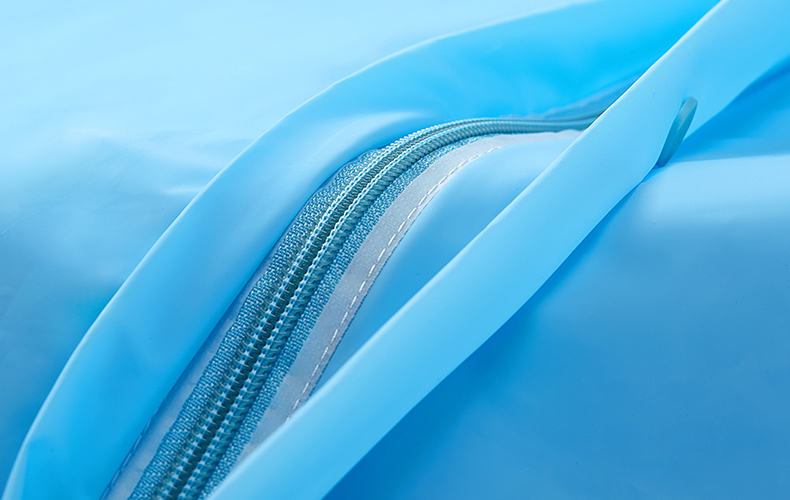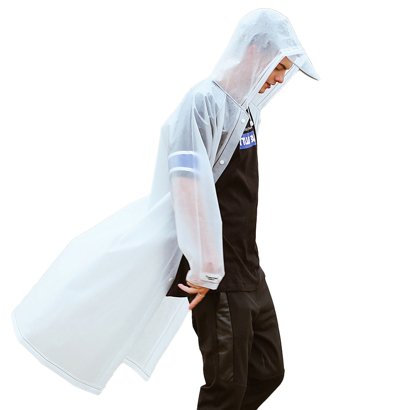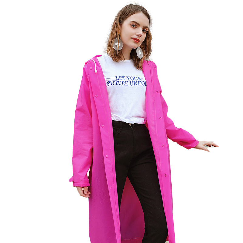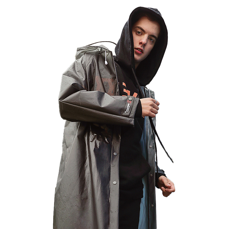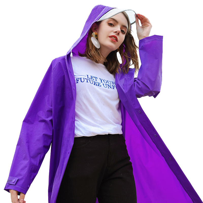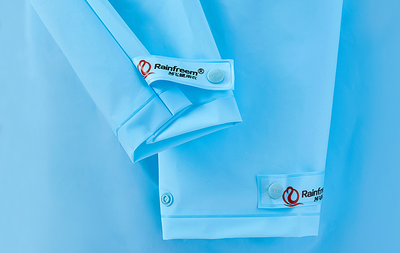 风衣式版型,纯色。连帽设计,脱戴方便。采用EVA环保面料,整件衣服不超过450克。