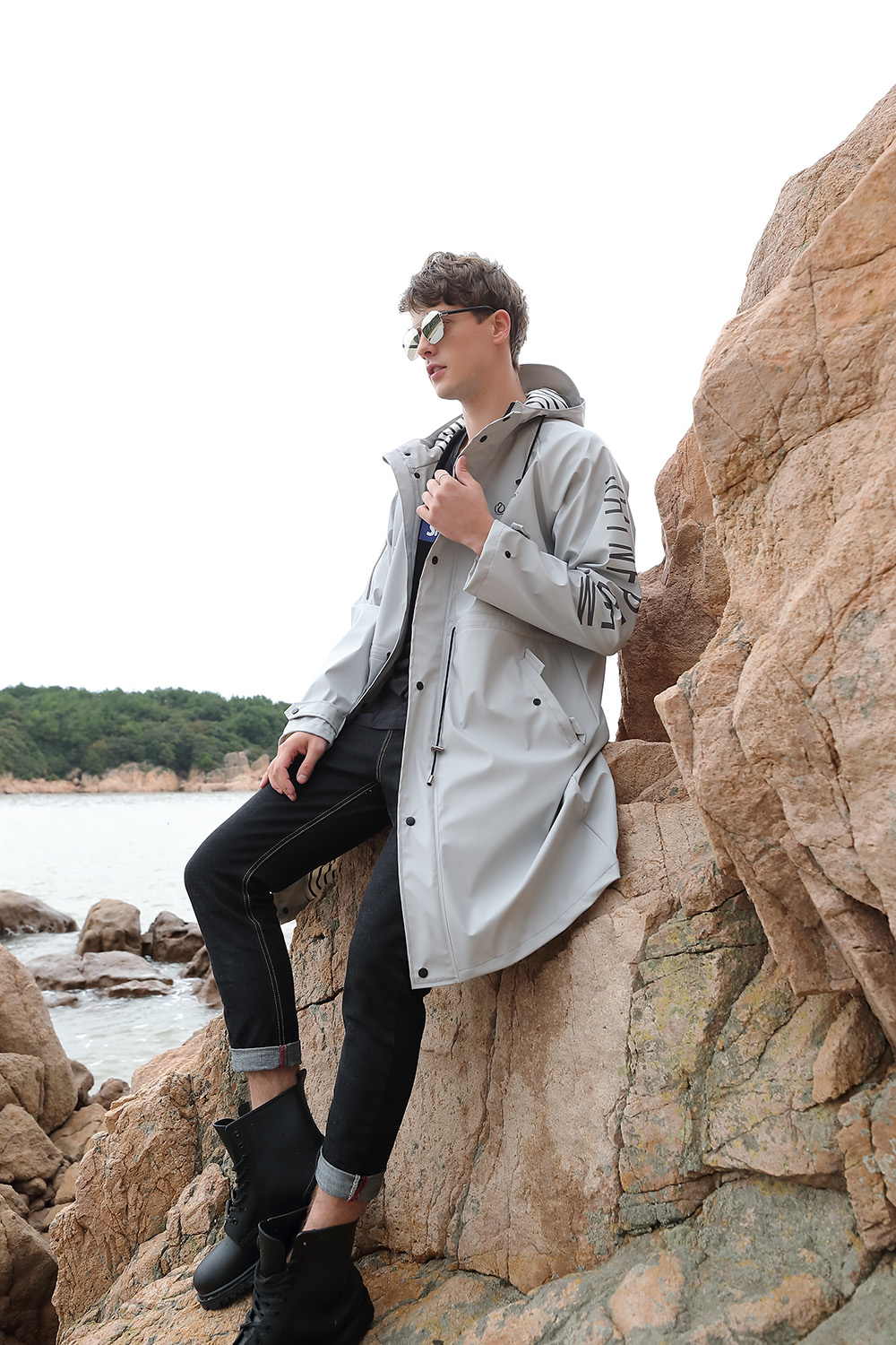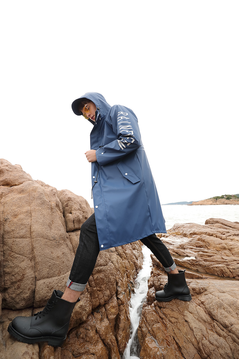 风衣版型,腰部抽绳设计,尽显身材。连帽设计,斜插袋设计美观实用,实用时尚两不误。PU面料防风挡雨,冬天不发硬,防水拉链,雨水无缝可进,质感舒畅,高频压胶工艺。