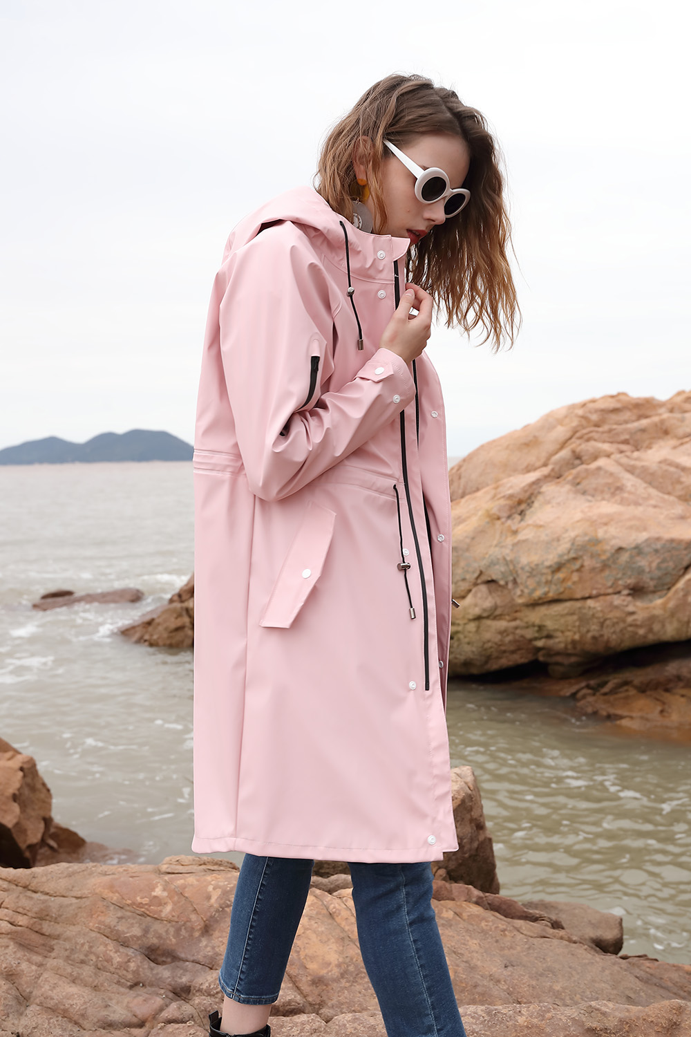 风衣版型,腰部抽绳设计,尽显身材