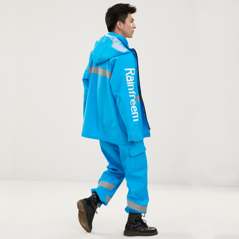 PVC面料,高频压胶,防风防雨,抗寒保暖。高亮反光,保障夜间骑行安全。