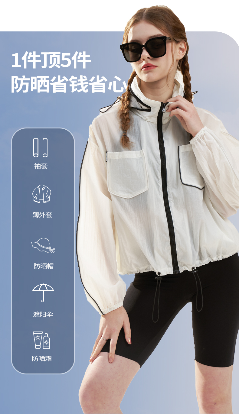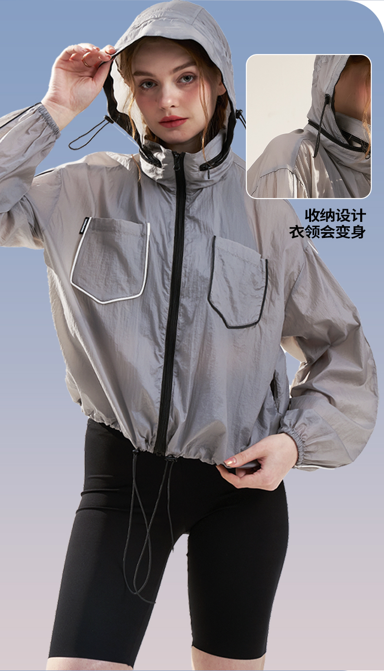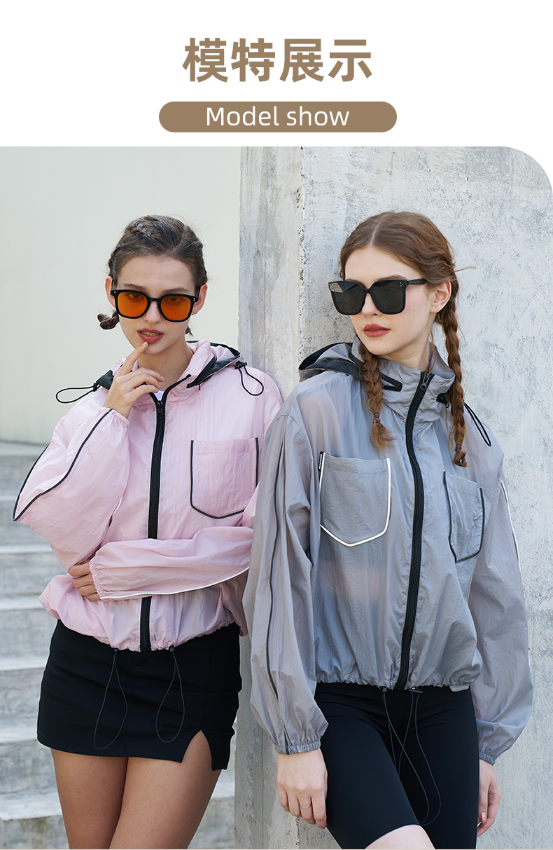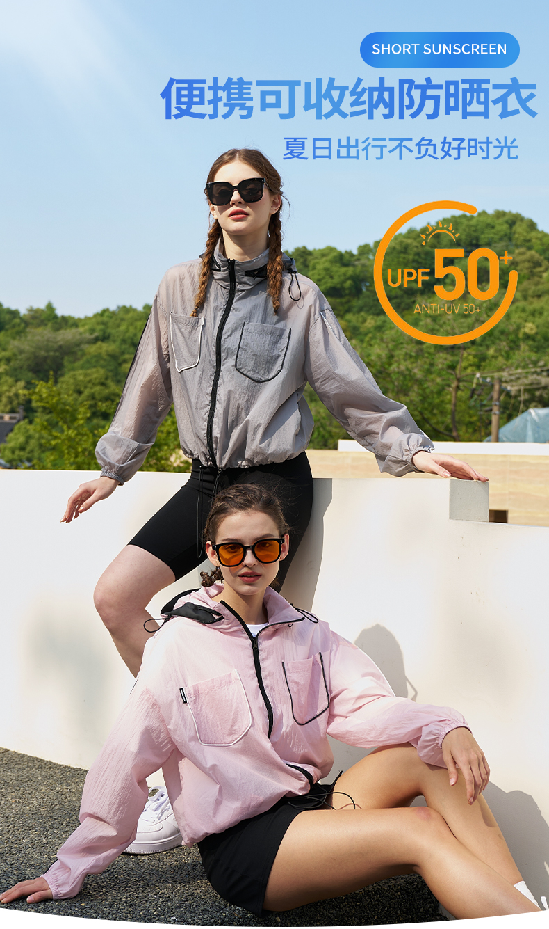 短上衣,五色可选。防晒衣,防紫外线。防泼水,轻薄面料,时尚便捷,健康亲肤。