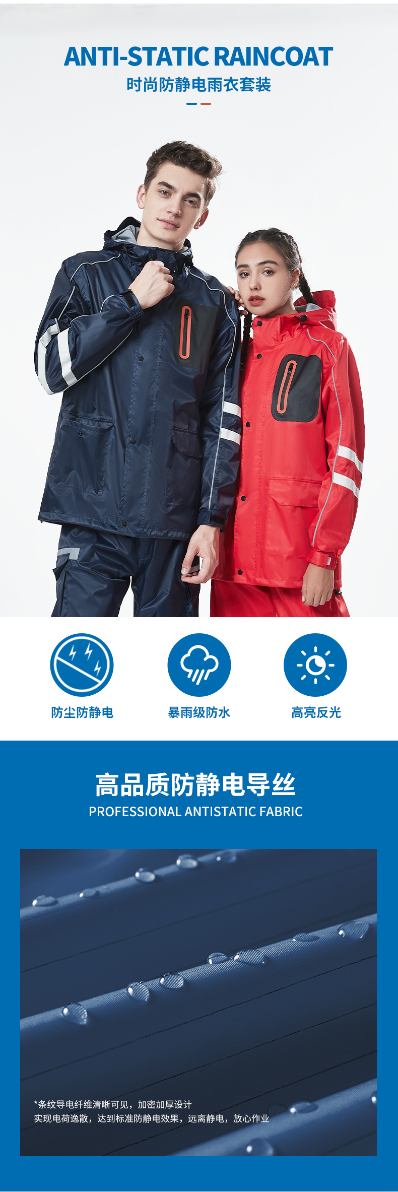防静电套装,双层套装,织入碳纤维导电丝。防风防雨,安全反光。