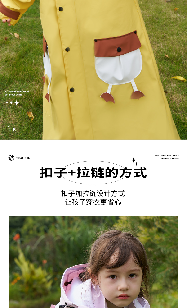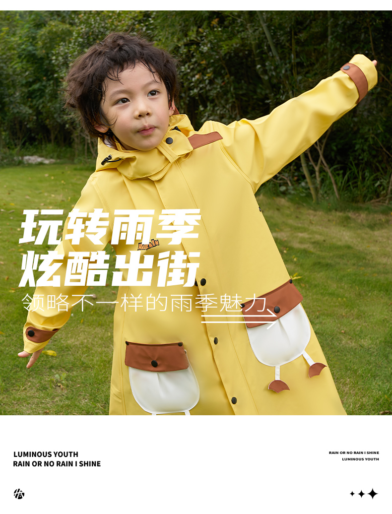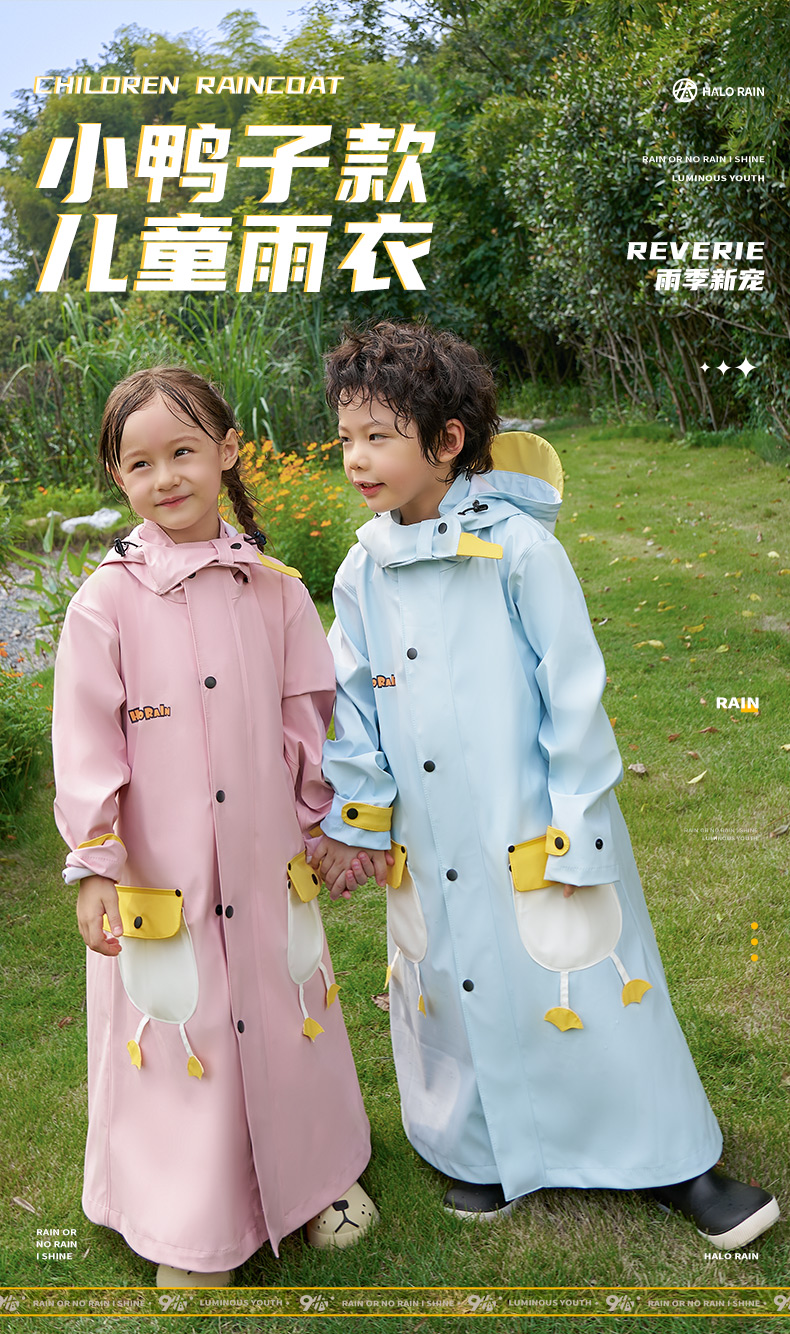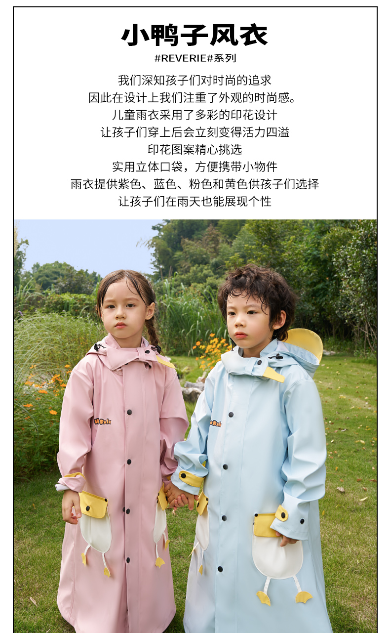 长款雨衣,四色可选。可爱风格。徽雨品牌,小鸭子款。