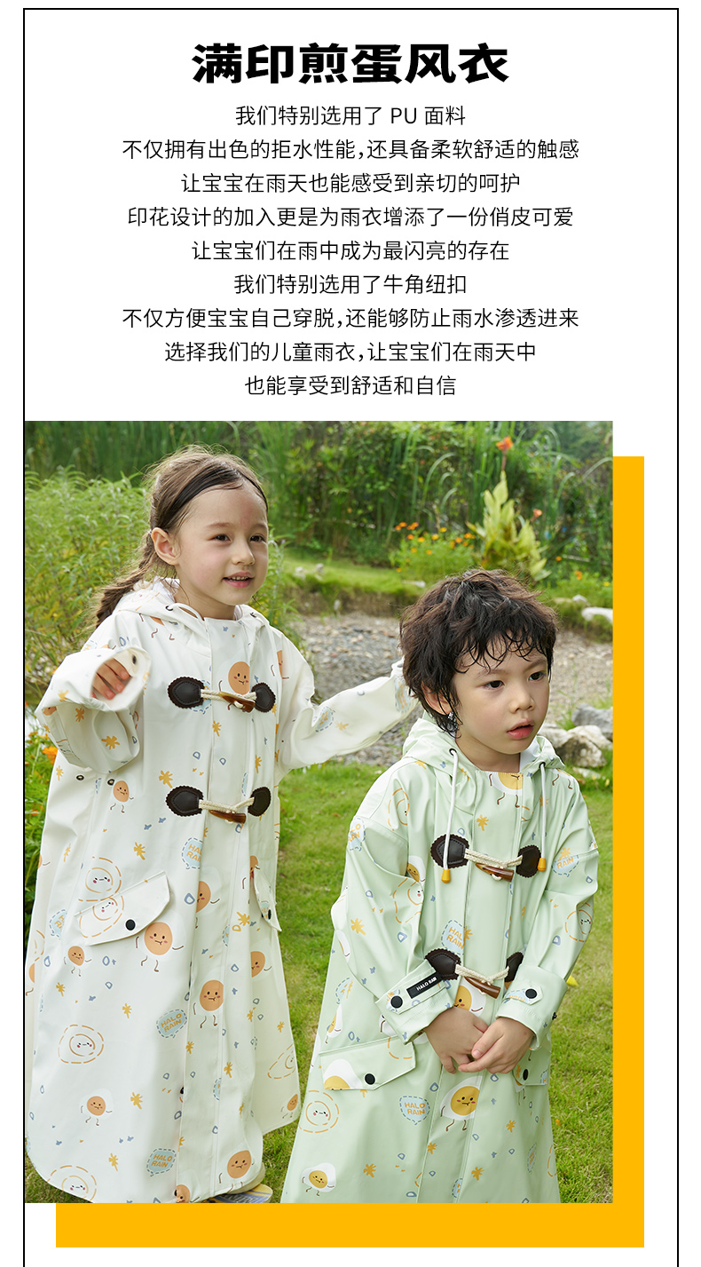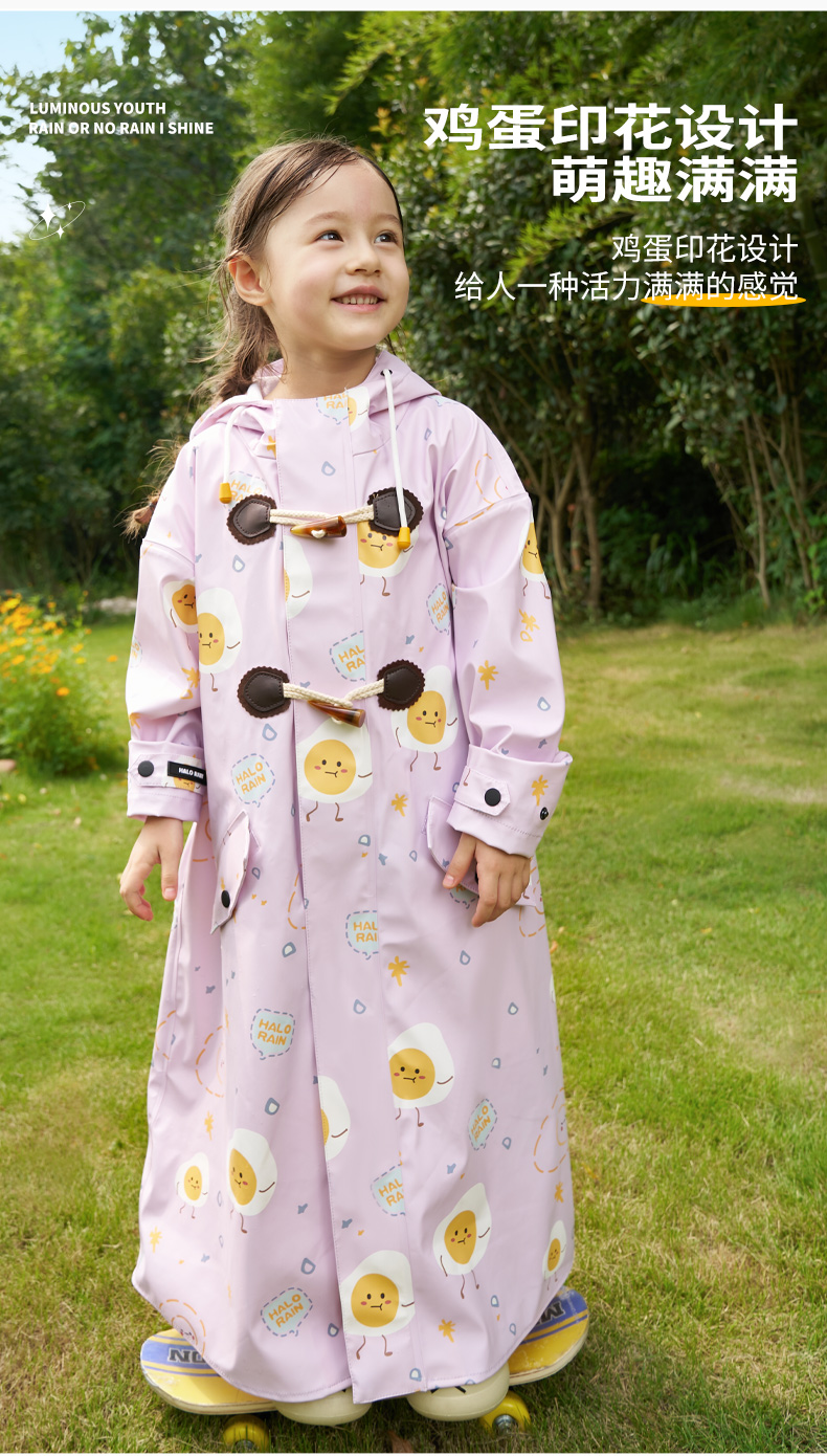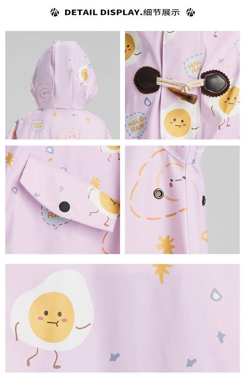 长款雨衣,四色可选。可爱风格。徽雨品牌,煎蛋印花款。