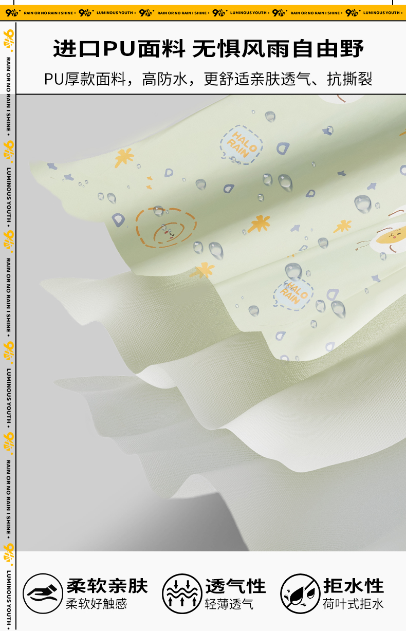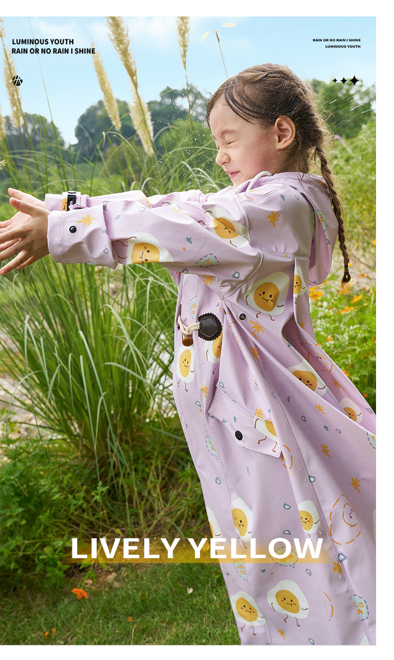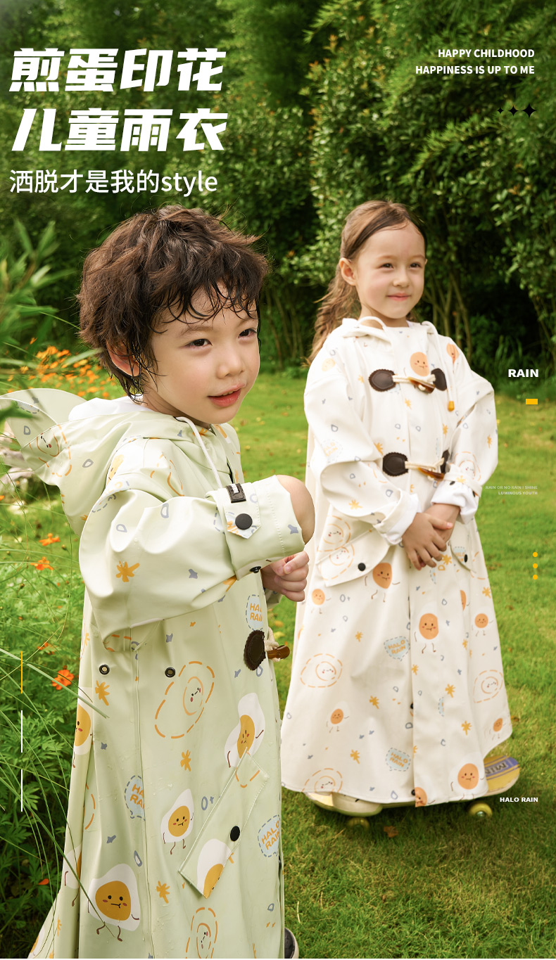 长款雨衣,四色可选。可爱风格。徽雨品牌,煎蛋印花款。