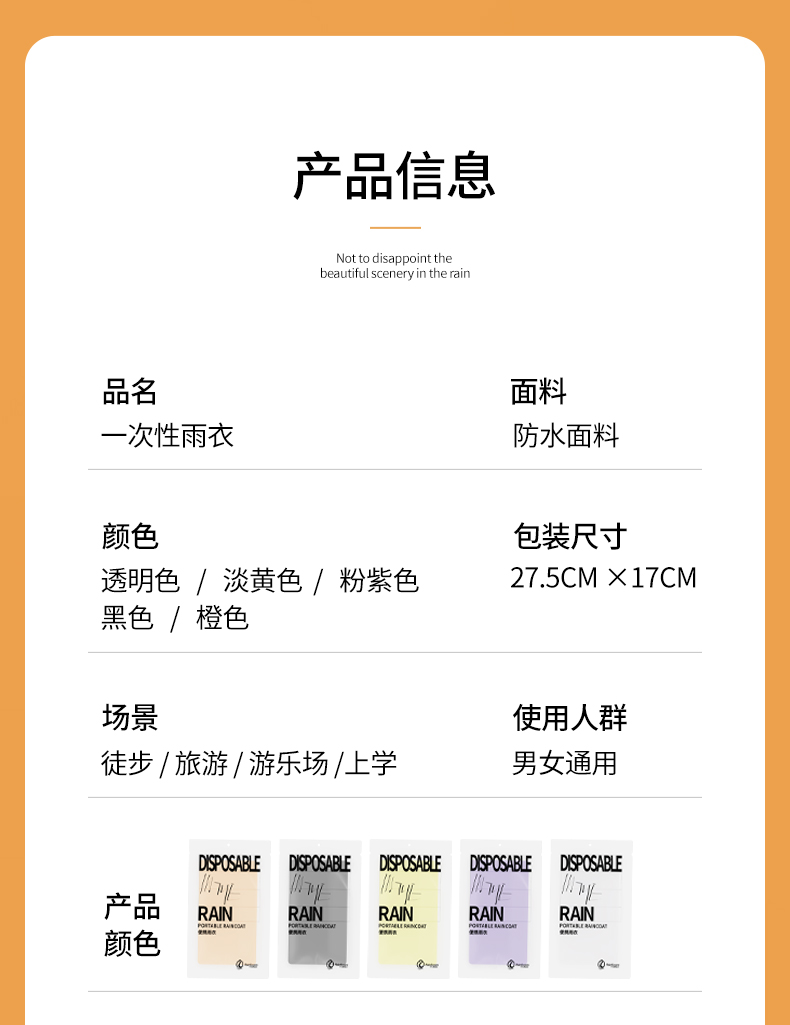 PEVA一次性雨衣